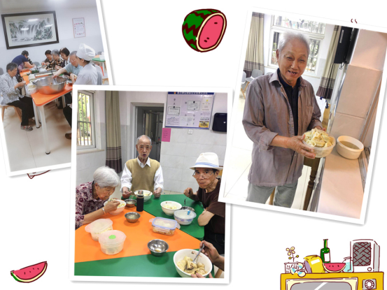 活動當天,金匱托老所內的歡聲笑語不斷,而熱情高漲的人們并不是社區(qū)志愿者,而是我們老人自己,我們的三位老人、兩位社工,自發(fā)的組織起了為全院老人包餛飩送溫暖的活動。